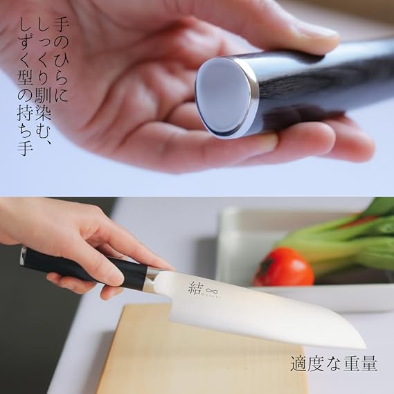 【結 musubi(むすび)】心を結ぶ、食卓の小さな奇跡。今までも、これからも。ずっと、ずっと健康でいてほしい大切な人。そんな相手と食卓を囲めるささやかな幸せで、お料理は「おいしい」のその先へ。食材の一つひとつを丁寧に切り分け、それを「結んで」いくことでぬくもりを感じる料理はできあがります。自分自身や、家族や、友人の健康を願いながら日々を丁寧に生きる。ともに食卓を囲むことで絆は深まり、心の結びつきもより強くなるでしょう。明治6年創業の老舗刃物メーカーが手掛ける「結 musubi」には人と人が食を