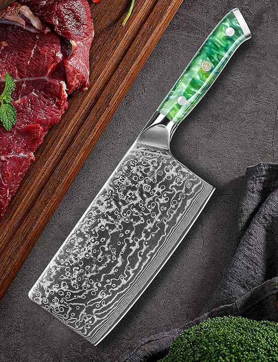 中華シェフナイフ - 7 インチ 包丁 - Xuan シリーズ - 67 層ダマスカス鋼キッチンナイフ - 樹脂ハンドル (ジェイド グリーン) a a