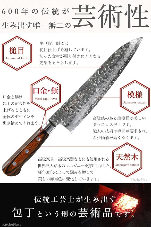 堺孝行 【プロの料理人が愛用するブランド】 ダマスカス 牛刀 包丁 210mm V金10号 vg10 万能包丁 33層槌目 マホガニー柄 日本製 青木刃物製作所 (型番dg21001) a a