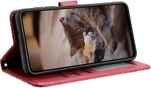 Xperia 1 VII ケース手帳型 レザー エクスペリア1 第7世代 カバー 内蔵マグネット軽量 耐衝撃 【TEDTIKJT】 Sony ケース 手帳型 エクスペリア 1 第七世代 スマホケース 桜の下の猫 xperia 1vii カード収納 スタンド機能 収納 財布型 人気 高級PUレザー (Xperia 1 vii ケース, 赤) a