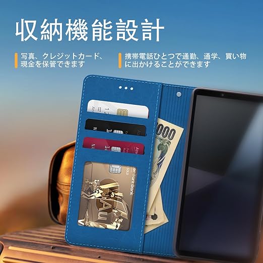 fagazzfu Sony Xperia 1 VII ケース 手帳型 全面保護 カード収納 エクスペリア 1vii スマホケース カード収納 スタンド機能付き 財布型 えくすへりあ 1VII SO-51F SOG15 携帯カバー レザー ラップホール付き 手触りが良い マグネット内蔵 擦り傷防止 人気 上質 ファッション (ブルー) a