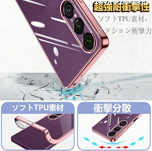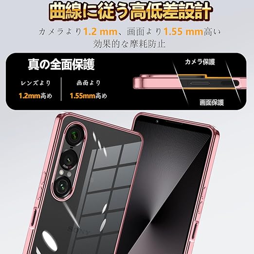 Xperia 1 VII ケース クリア 薄型 透明 TPU ソフト 耐衝撃 黄変防止 ストラップホール付き xperia 1 vii カバー SO-51F対応 Xperia 1 7 ケース(ローズゴールド) a