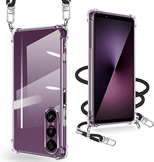 Xperia 1 VII ケース ショルダー クリア ケース 耐衝撃 全面保護 エクスペリア 1 VII カバー ストラップ付き スマホケース 調節可能 肩掛け 斜めかけ 縄掛けケース 紐付き 薄型 軽量 取り外し可能 落下防止【透明】 a