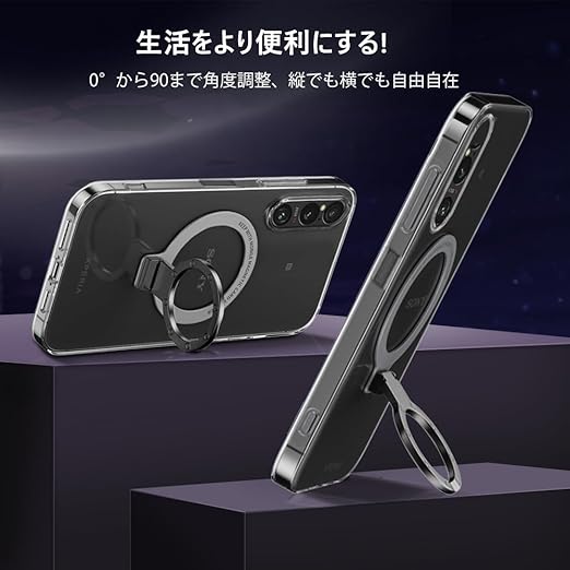 Xperia 1 VI ケース Xperia SO-51E ケース SOG13 透明 金属リング付き エクスペリア 1 VI クリア スマホケース タンド機能 ストラップホール付き 擦り傷防止 滑り止め 落下防止(Xperia 1 VI 透明ケース) a
