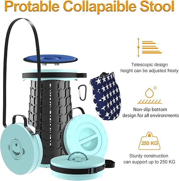 LOCYOP 折りたたみ椅子 折り畳みいす 軽量 アウトドアチェアコンパクト 伸縮式 おりたたみスツール クッションつき 収納バッグとカラビナ付き 高度調節可能 45CM 耐荷重200kg 持ち運び便利 一秒開閉できる 旅行 キャンプ 椅子 行列待ち 釣り ハイキング 風呂 花見 花火大会 フェス 運動会 屋内/屋外用 アウトドア インドア(クッション、収納バッグ、カラビナ付き) a