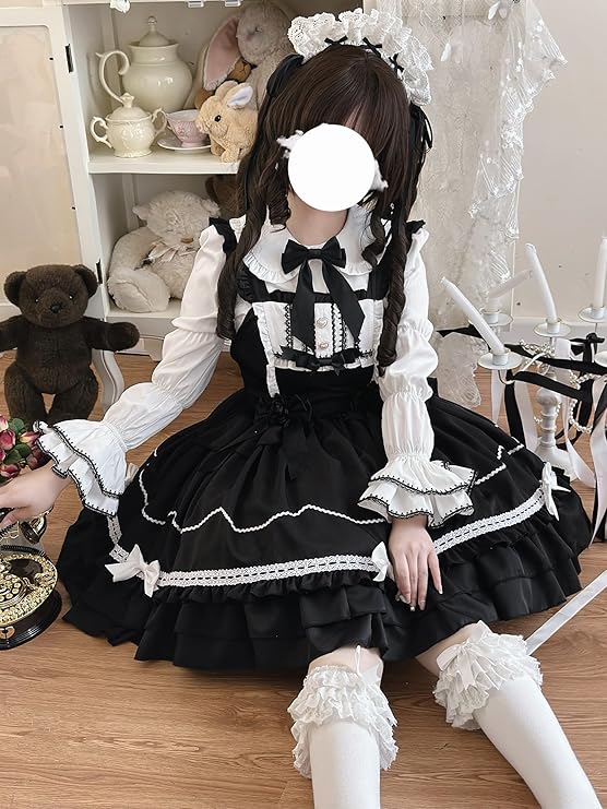 [XHSUKADO] ロリータ ジャンパースカート JSK ゴスロリ アイドル 衣装 コスプレ レディース かわいい 大人 女の子 仮装 ドレス トップス 春 秋 冬 夏 リボン付き フリル レース ハートボタン 学園祭 文化祭 イベント お嬢様 a