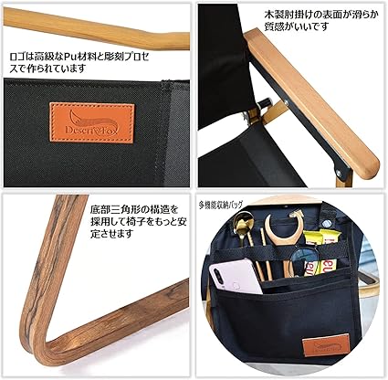 【仕様】:材質:シート/オックスフォード生地 フレーム/カーボンスチール 。 展開サイズ(約):78(h)×54×51cm 収納サイズ(約):55×8×73(h)cm 重量(約):3.6kg 耐荷重(約):150kg。 【独自開発の収納ポケット付き】収納力の強いポケット付き、スマホ・タブレット・ペン・書類など収納便利、室外・室内に最適。吊り下げ収納ポケット、ひじ掛け以外、テーブ