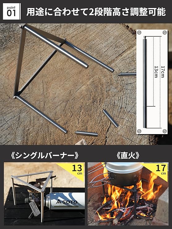 GRANDOOR クッカースタンド グリルスタンド 五徳 高さ調整可能 収納袋付 直火 バーナー a