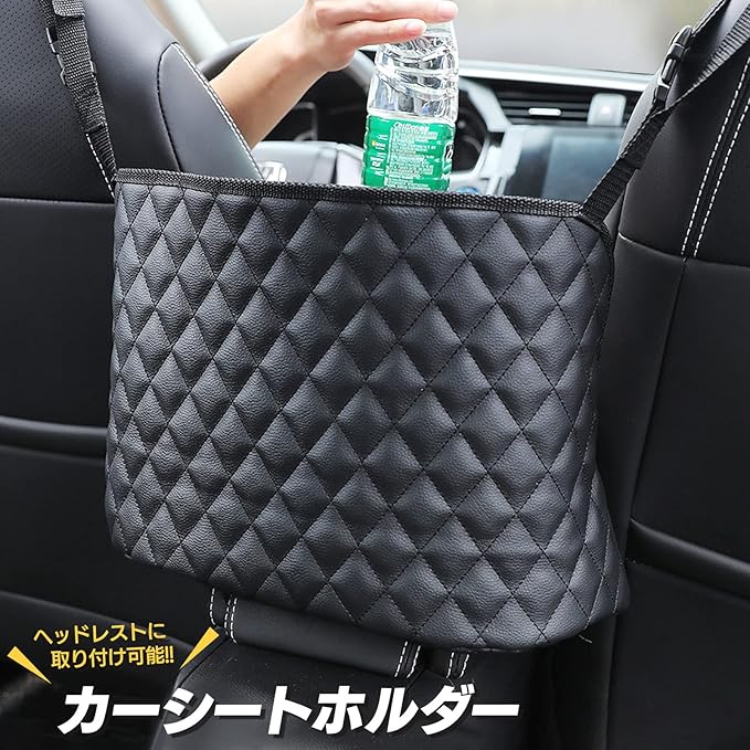 このカーシートホルダーは、シートバックに取り付けることで収納スペースを増やし、車内をすっきり整理するのに役立ちます。シートポケットの隙間を有効活用し、小物やリモコン、ティッシュ、財布などを収納するのに最適です。ドライブ中に必要なアイテムを手の届く範囲に収納できるため、使い勝手が向上します。取り付けは簡単で、ヘッドレストにかける仕様のため、さまざまな車種に対応可能です。