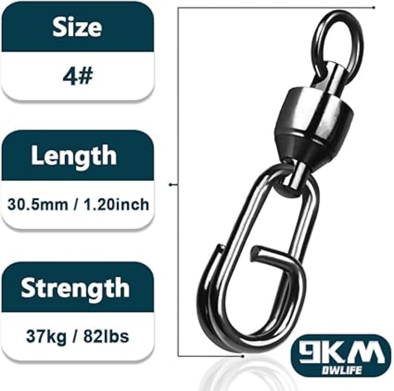 9KM DWLIFE スイベル スナップ ブラック 25個セット ボールベアリング ステンレス 高強度 高速回転 耐腐食 クイックチェンジ 釣り道具 海釣り a