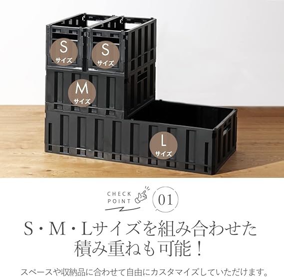 【BLKP】パール金属(PEARL METAL) 収納 コンテナ ボックス 折りたたみ式 Mサイズ 幅28.5 × 奥行28.5 × 高さ14.5cm 日本製 ブラック 黒 BLKP AZ-5171 a