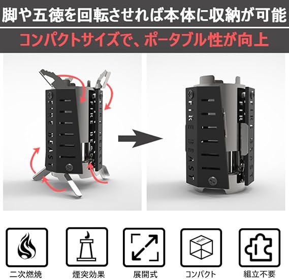 Fire Beast ロケットストーブ 高火力【折りたたみ式コンパクト設計】二次燃焼 薪ストーブ キャンプストーブ 焚き火台 コンパクト 持ち運びが簡単 ポータブルキャンプ用品 調理 暖炉 非常用 収納バッグ付き a