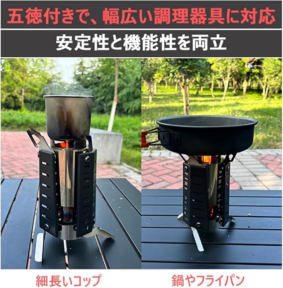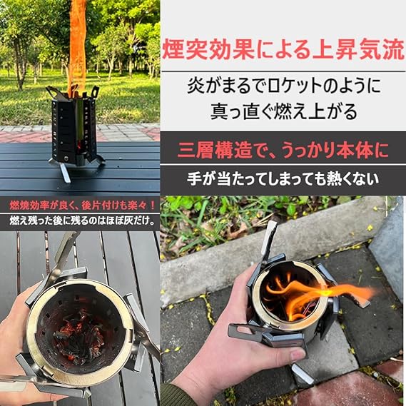 【煙突効果で高効率燃焼】「煙突効果」により空気の流れを促進し、燃焼効率を大幅にアップ。素早い点火と安定した高火力を実現し、手軽にたき火を楽しめます。