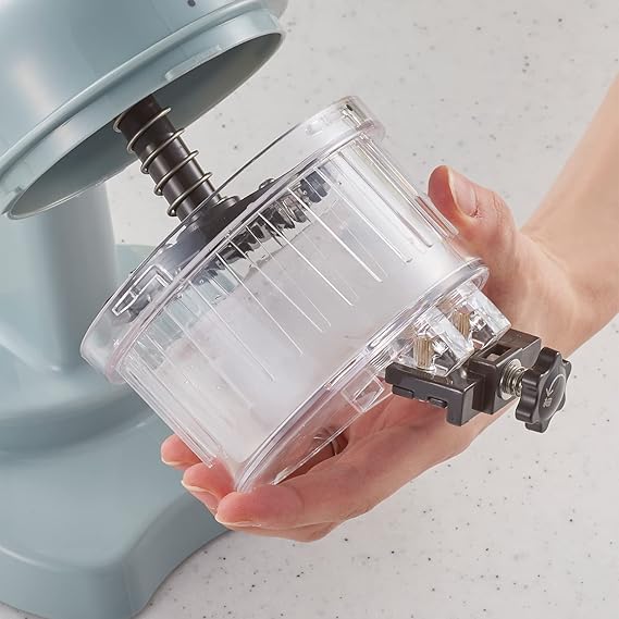 削れ具合はお好みの細かさに調節可能! 刃の調整ダイヤルで氷の細かさを調節することで、ふわふわ、さらさら、シャリシャリまで思いのまま♪ まるで専門店のような口どけなめらかなかき氷を楽しめます。 専用製氷カップが付属するのに加えて、バラ氷にも対応しています。