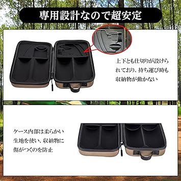 【専用収納ケース】 レギュレーターストープ用収納ケースです。ST-310/ST-340に対応できます。 ①レギュレーターストーブとCB缶2本がぴったり収まり、まとめて持ち運べる便利な収納ケースです。(CB缶、レギュレーターストーブは付属していません) ②キャンプに行く際、他の荷物と分けて持ち運ぶことができます。