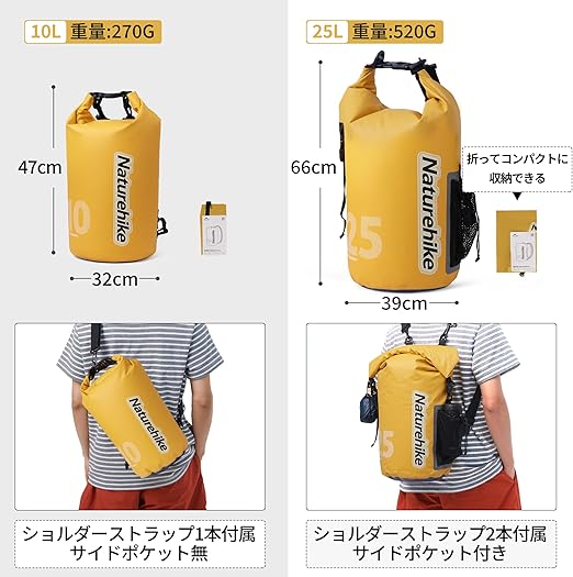 [Naturehike] 公式ショップ 防水バッグ 完全防水 リュック 超軽量 10L/25L 乾湿分別可能 登山 防水バッグ ドライバッグ リュックサック バイク コンパクト 防災 デイパック 男女兼用 アウトドア 泳ぐ 通勤 通学 ビーチキャンプ 海 a