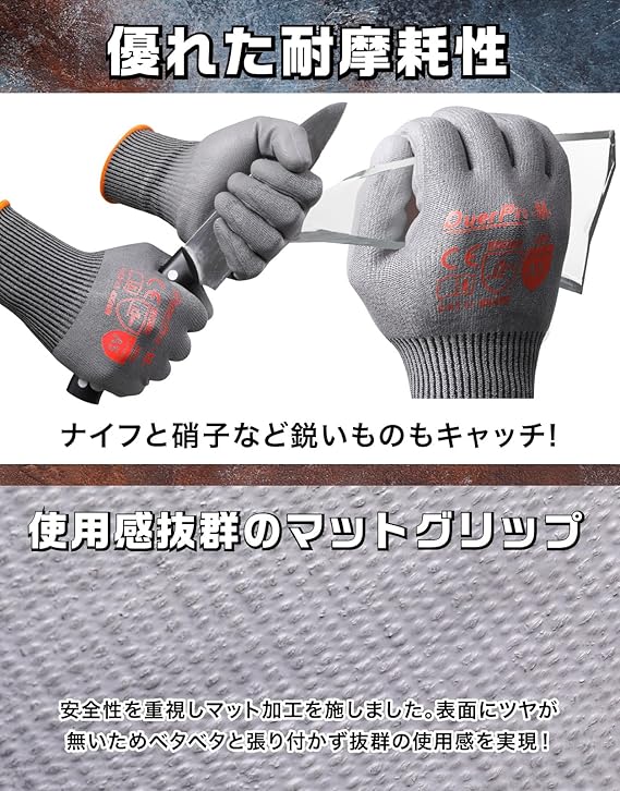 [Duerfusa] 防刃手袋 ANSI耐切創レベル5【高耐切創性とフィット感を両立】 ダイヤモンドシルク繊維 耐切創手袋 防刃 作業用手袋 防災 耐摩耗 耐引き裂き コーティング付き 滑り止め 手袋 軍手 災害 現場 工場 DIY アウトドア 作業用 大口注文歓迎 ガーデニング 選べる1双2双 a