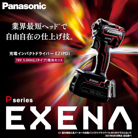 パナソニック(Panasonic) 充電インパクトドライバー EXENA (18V 5.0Ah電池パック×2個/充電器/プラスチックケース付) デュアル(14.4V/18V対応)+BRAIN 電子クラッチ搭載 Pシリーズ EZ1PD1J18D-B ブラック a
