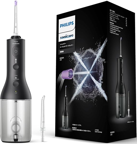 フィリップス ジェットウォッシャー ソニッケアー コードレスパワーフロッサー3000 口腔洗浄器 (X型水流ジェットウォッシャー) HX3826/23 ブラック 【Amazon.co.jp限定】 a