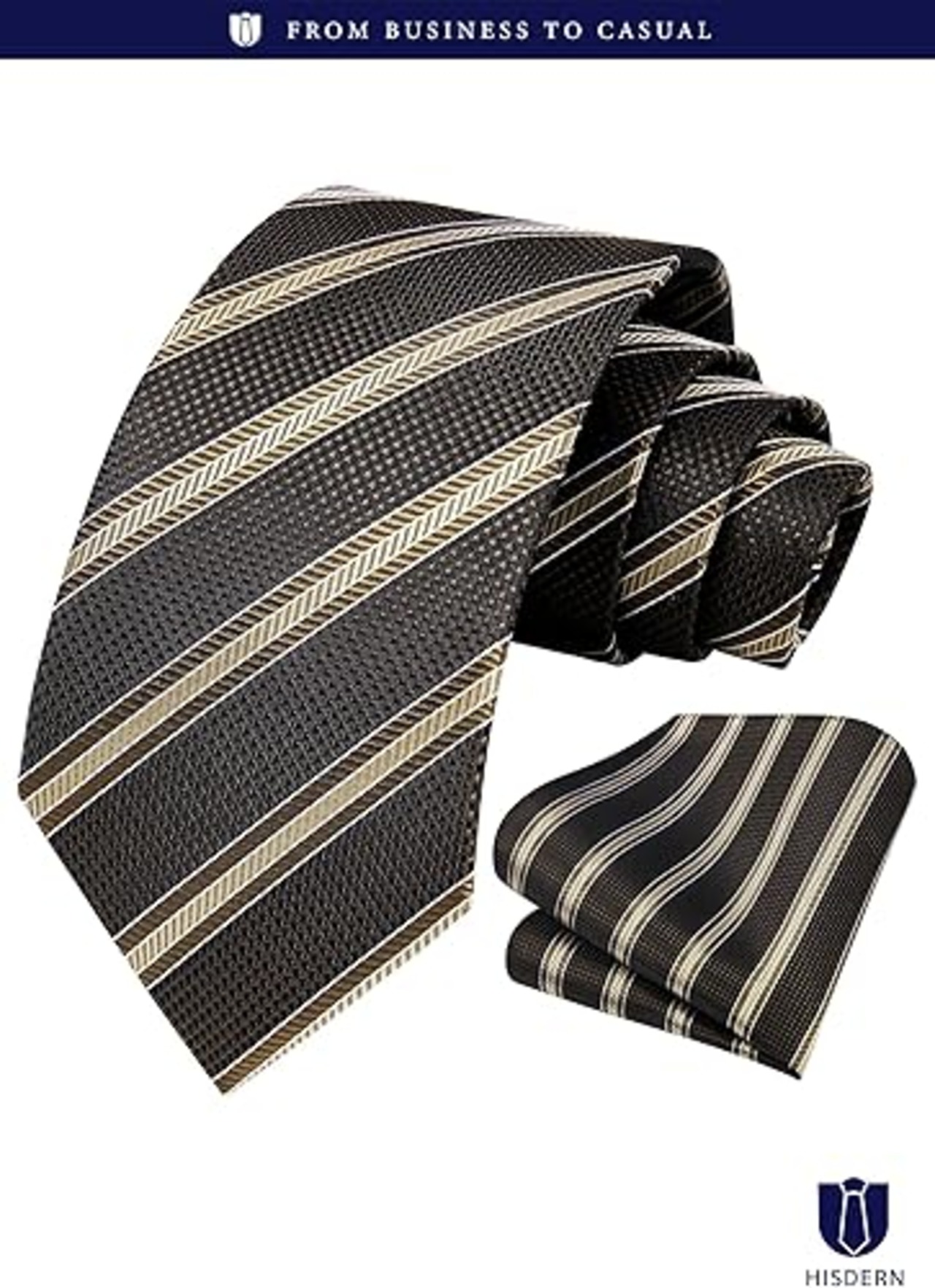 [HISDERN] HC-05 ブランド ネクタイ メンズ チーフ付き 幅8.5cm 高級 イージーケア 洗える ストライプ チェック ドット柄 入学式 就活 卒業式 就職 サラリマン 43柄 a