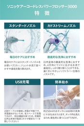 フィリップス ジェットウォッシャー ソニッケアー コードレスパワーフロッサー3000 口腔洗浄器 (X型水流ジェットウォッシャー) HX3826/21 ホワイト a