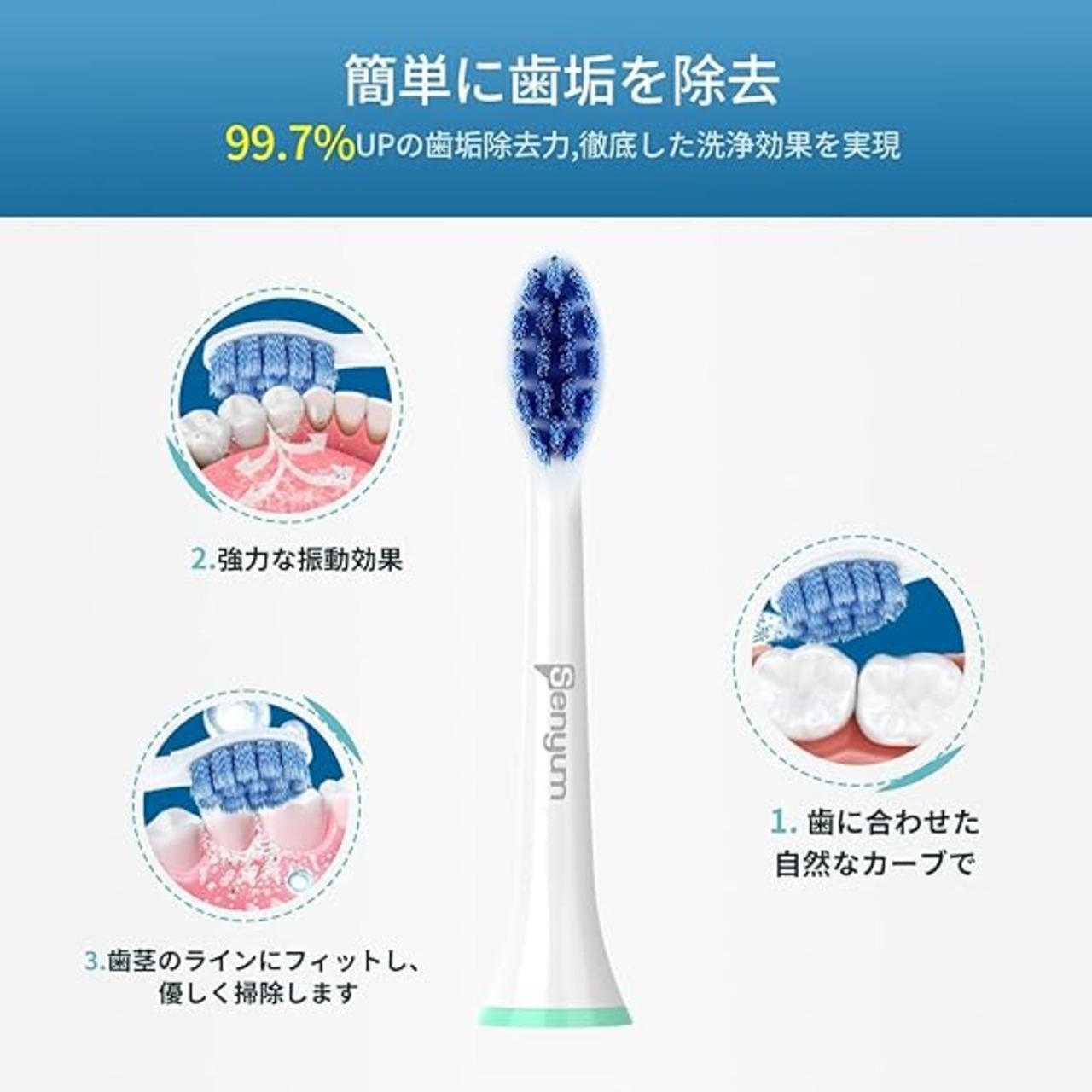 完全互換性 - Senyumの歯ブラシ替えブラシは、フィリップスソニッケアー電動歯ブラシのハンドルと完全に互換性があるように特別に設計されています。 (フルプレスボタン方式)