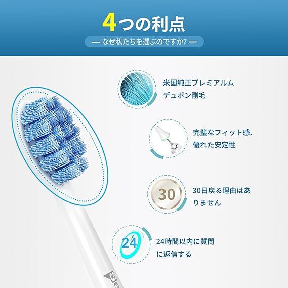 高機能素材 - 当社の替えブラシは、プレミアムなデュポン素材を使用しており(名前ブランドと同じ)、歯と歯ぐきをケアするために丸みを帯び
