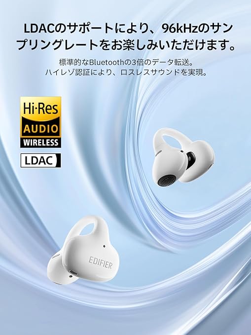 Edifier LolliClip 「VGP2025金賞」オープンイヤーイヤホン bluetooth 5.4 ワイヤレスイヤホン ノイズキャンセリング ハイレゾ 耳を塞がない 寝ホン マイク付き 軽量7g IP56防塵防水/最大39時間再生/急速充電/音漏れ防止/LDAC/AAC/SBC完全対応/装着自動検出/片耳・両耳使用可能 a