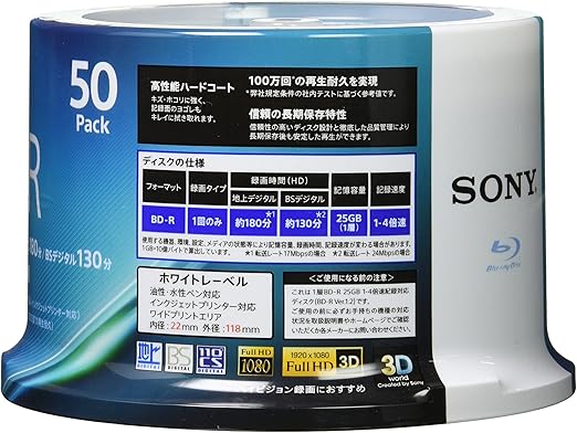 規格:映像用BD-R 1層 入り数:50枚(スピンドル)