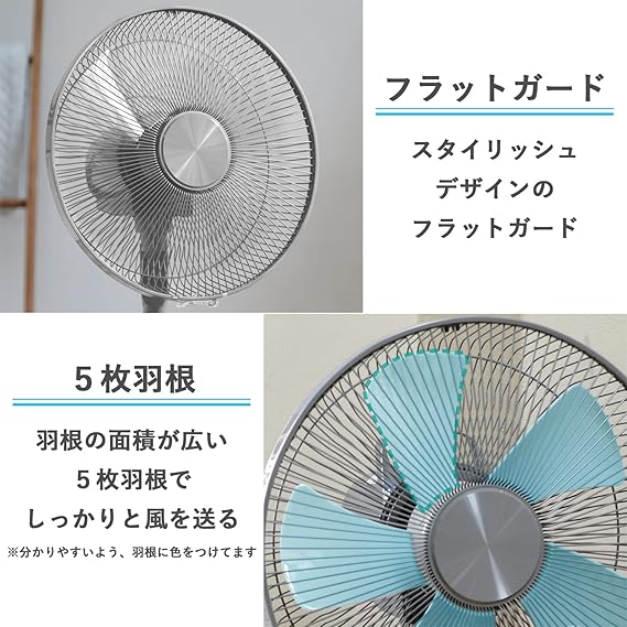 【リビング扇風機】ここちよい風を送ってくれるスタンダードタイプのリビング扇風機。フラットガードでシンプルなデザインがどんなインテリアにも馴染みます。ダイニングでは高め寝室では低めなどシーンに合わせて高さ調節も可能です。