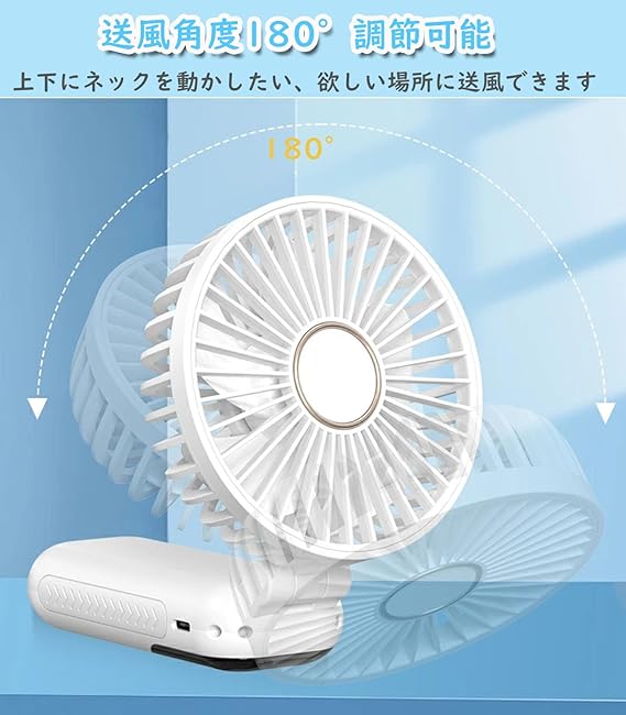 【5000mAhバッテリー&長時間利用可能】 この手持ち扇風機は5000mAhの大容量バッテリーを搭載し、わずか2.5時間の充電で最大20時間連続使用が可能。外出先でのバッテリー切れの心