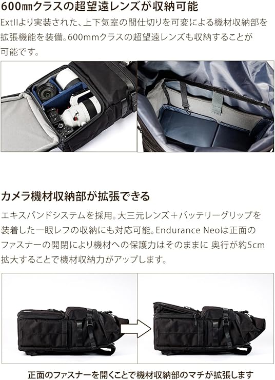 [Endurance] エンデュランス カメラバッグ Neo ネオ 大容量 2気室 カメラリュック バックパック bh-51 a