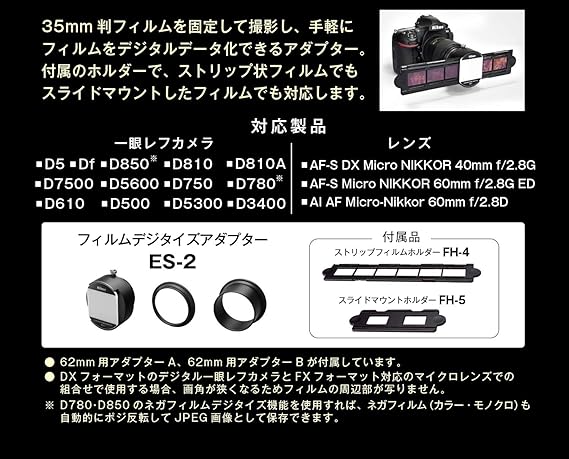 カラー、モノクロのネガフィルム(35mm判)を、簡単に4544万画素(記録画素数)のデジタルデータに変換できます。
