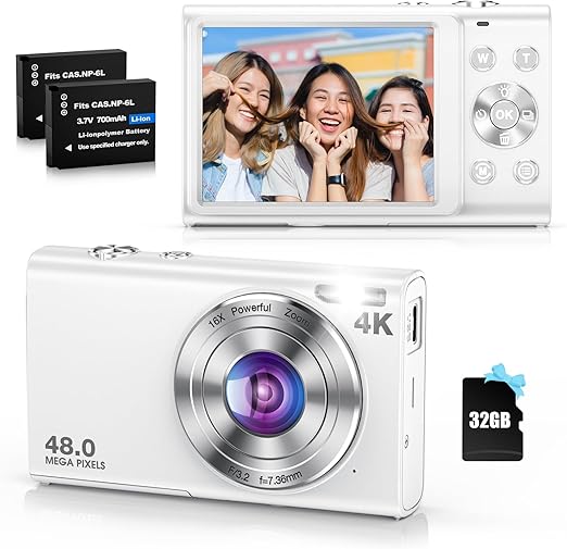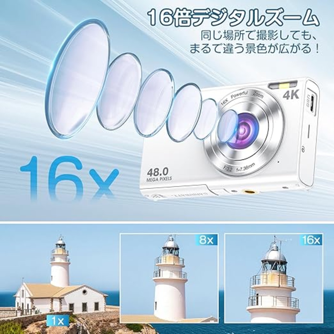 デジカメ 4K デジタルカメラ オートフォーカス 4800万画素 コンデジ 16倍デジタルズーム 手ぶれ補正 Vlog 自撮り コンパクトカメラ 2.8インチIPSスクリーン 32GBMicroSDカード付き バッテリー2個付属 軽量 携帯便利 初心者向け 忘年会/クリスマス/新年/旅行 a