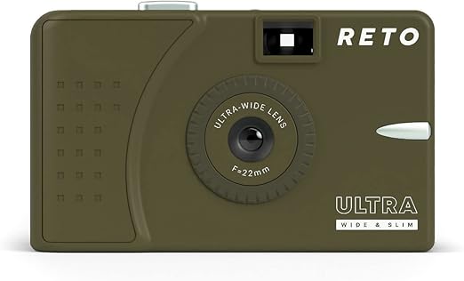 RETO Ultra Wide & Slim 35mm 再利用可能な昼光フィルムカメラ - 22mm 広角レンズ、フォーカスフリー、軽量、使いやすい (オリーブ) a
