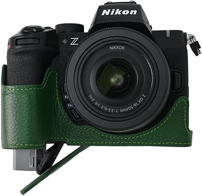 SIUTATDSH カメラケース 銀付牛革 適用 Nikon ニコン Z50II Z 50 M2 Mark2 ケース ライナーケース カメラホルダー、耐震・耐衝撃・便携?三脚設置でき、電池交換でき。 (グリーン) a