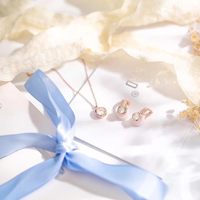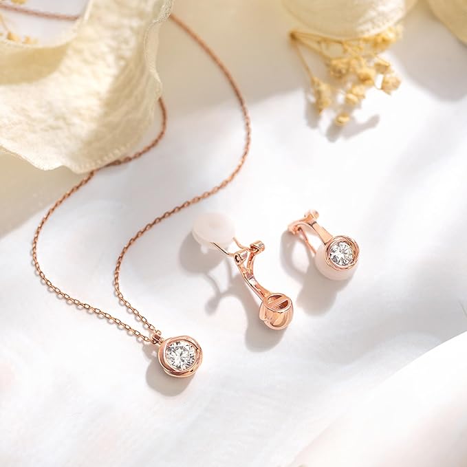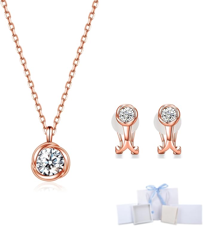 [Free bird] ネックレス レディース ピアス セット 「バラのキッス」 最高級 ジルコニア シルバー ペンダント 金属アレルギー対応 アクセサリー 一粒ジュエリー 誕生日 記念日 母の日のプレゼント c