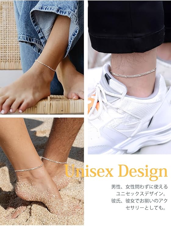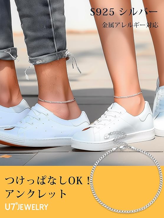 [§U∞7∞U7] U7 アンクレット レディース つけっぱなし メンズ シルバー925 金属アレルギー対応 ペアアンクレット シンプル かわいい 足首飾り 女性 夏 ファッション アクセサリー a