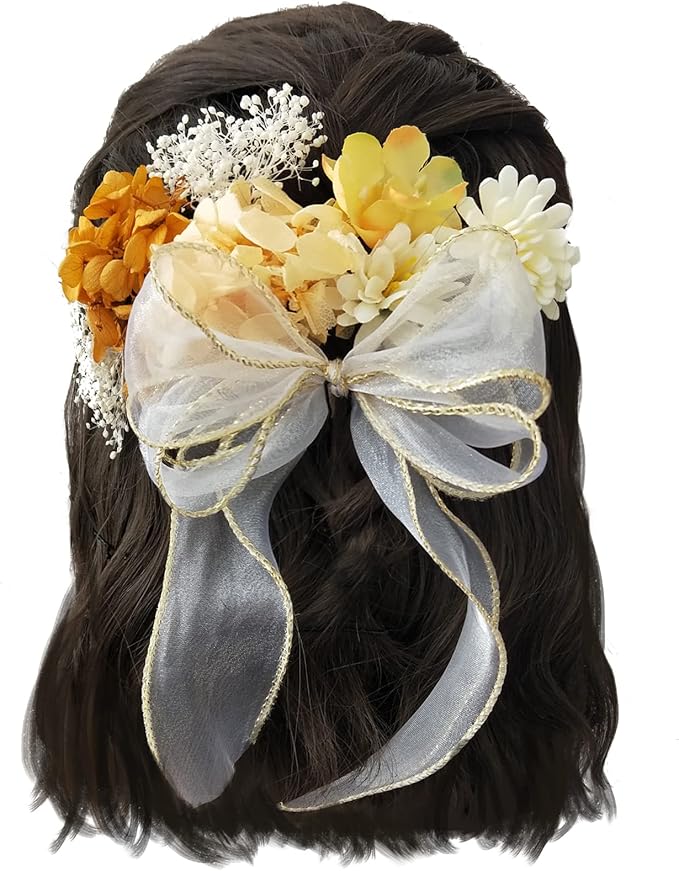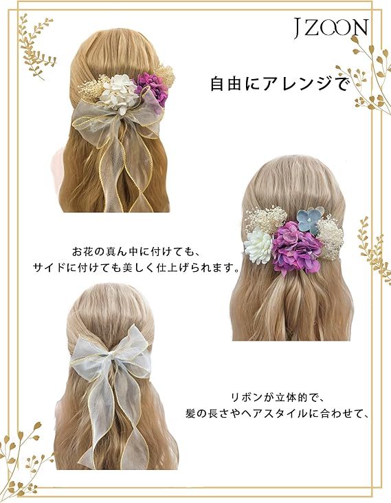 [JZOON] 9色展開 リボン 髪飾り ドライフラワー ダリア 造花飾り 和玉 赤 ヘアアクセサリー 成人式 水引 振袖 着物 卒業式 七五三 浴衣 袴 結婚式 かすみ草 和装 造花 手作り b