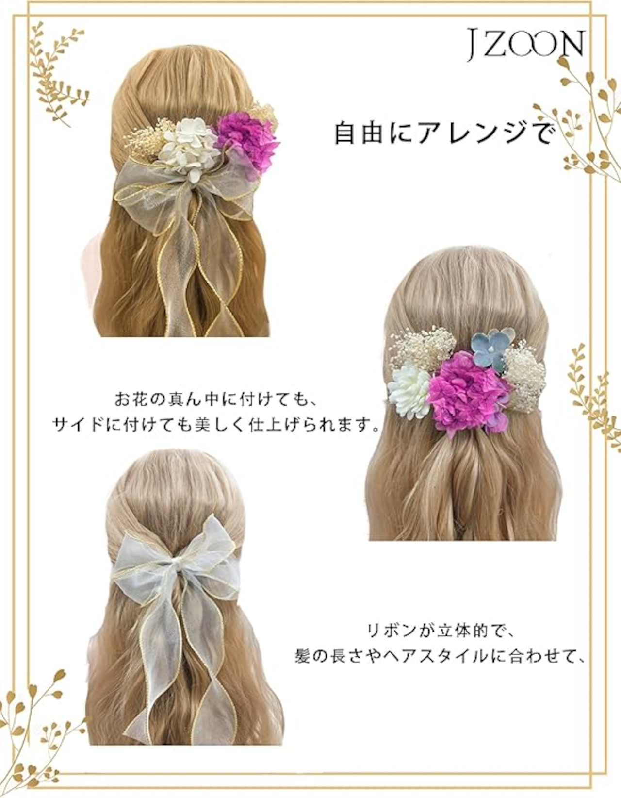 [JZOON] 9色展開 リボン 髪飾り ドライフラワー ダリア 造花飾り 和玉 赤 ヘアアクセサリー 成人式 水引 振袖 着物 卒業式 七五三 浴衣 袴 結婚式 かすみ草 和装 造花 手作り d