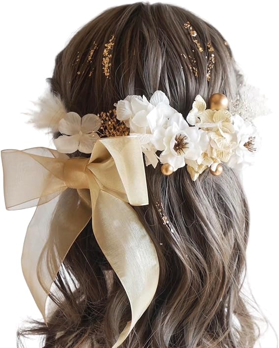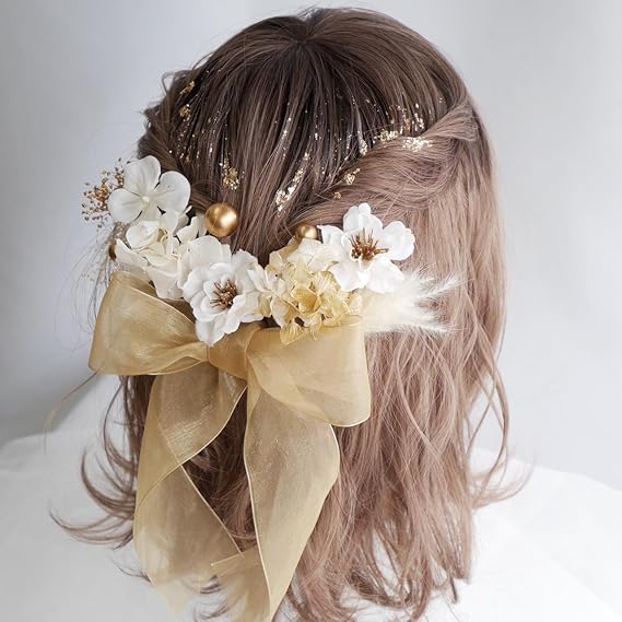 Lomeri ロメリ【3色展開】オーガンジーリボンの髪飾り (ゴールド)O8 a