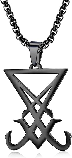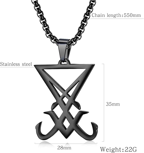 Rockyu ルシファード 宗教風 ネックレス メンズ ステンレス サージカル ブラック 黒 封印 ペンダント シンプルファッション 父の日 おしゃれ ギフト a