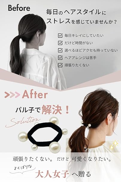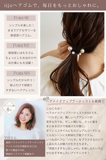 【専門家推薦! 30秒でスタイル完成】 ヘアゴム パール パル子 iijo ヘアアクセサリー おしゃれ シンプル 黒 跡がつかない 痛くない (パル子) a
