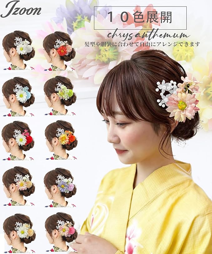 【JZOON 髪飾り】 全10色 浴衣 髪飾り ヘアアクセサリー ヘッドドレス ヘアメイク 成人式 和装 着物 振袖 袴 浴衣 夏祭り造花 花飾り 花火大会 卒業式 七五三 結婚式 造花 花飾り 簡潔 髪留め 入学式 発表会 アクセサリー Y1801 緑 d