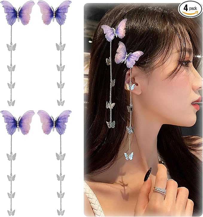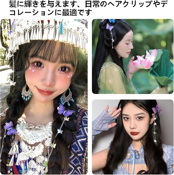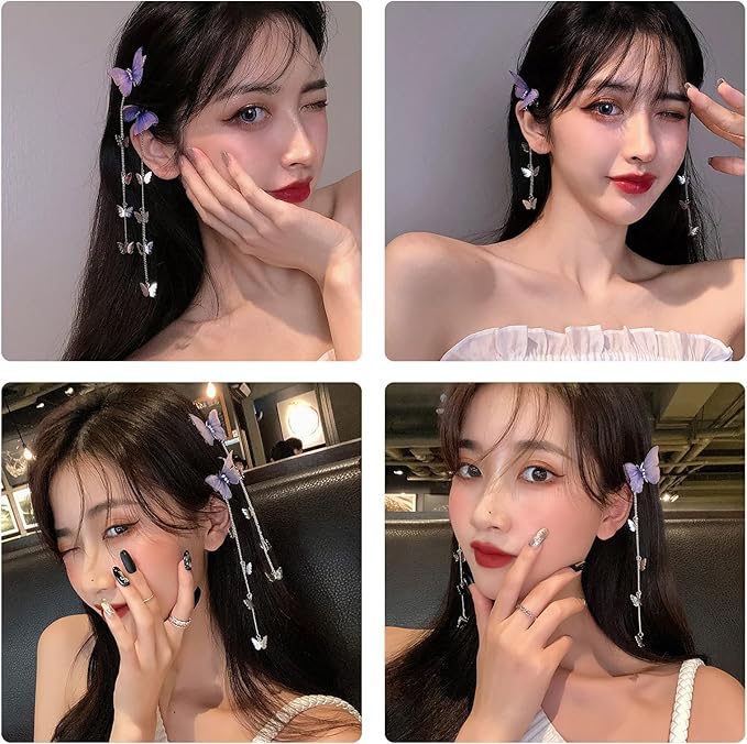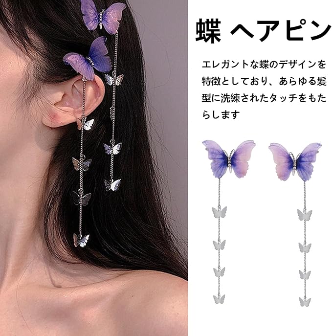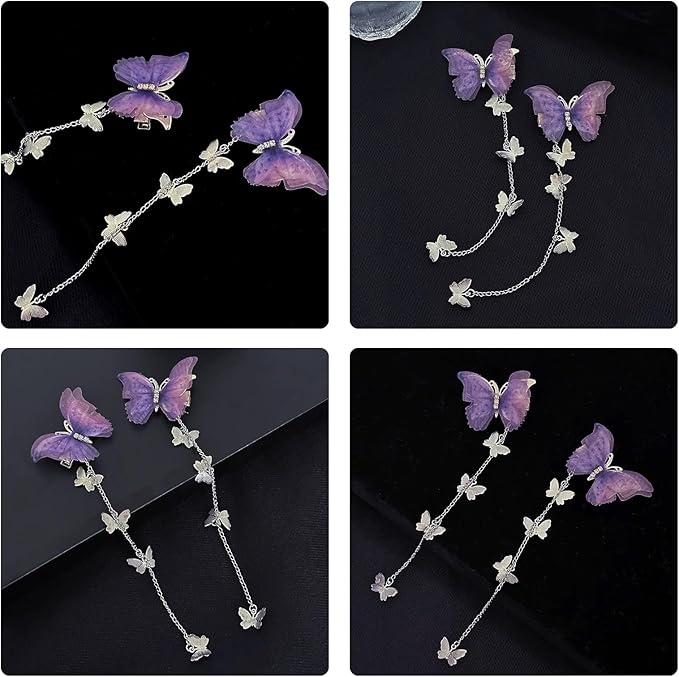 YANHUILAY 蝶 ヘアピン【4本セット】 蝶 ヘアクリップ 前髪クリップ 可愛い 髪飾り タッセル付き 揺れる 閃光を放つ 蝶 髪留め おしゃれ 人気 ヘアアクセサリー 浴衣 着物 誕生日 結婚式 パーティー 贈り物 レディース パープル a