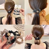 shefun シュシュ シルク 跡がつかない ヘアゴム 5個セット 大人 髪ゴム メタルプレート シルクゴム おしゃれ ボリューム レディース 髪飾り JP221 a