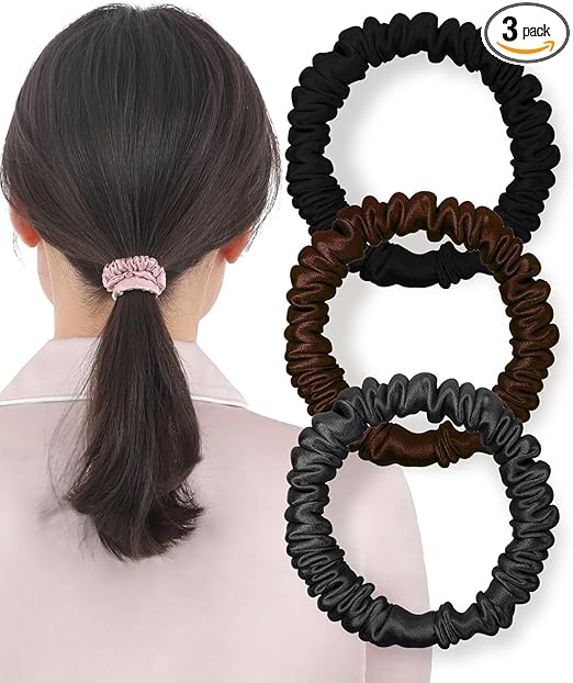 【ヘアケアのプロ監修】 シルク ヘアゴム シュシュ 髪ゴム シルクゴム 跡がつかない SILK100% おしゃれ 太め 3個セット (アソートA) a