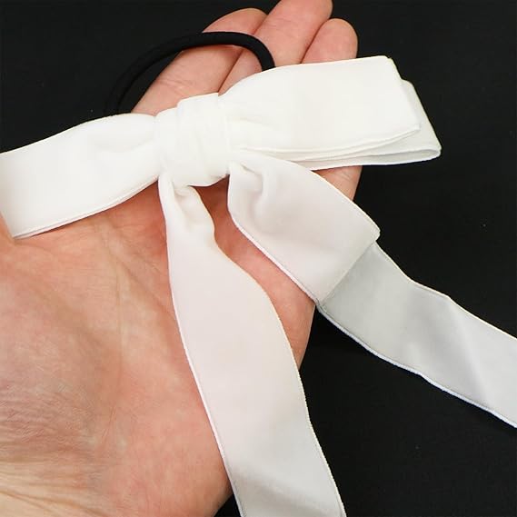 ベロア リボン ヘアゴム 2個入り 【ホワイト】 白 ロングリボン 長い ヘアアクセサリー 髪飾り 髪留め 可愛い かわいい おしゃれ きらきらぷんぷん丸 HGM-009 a