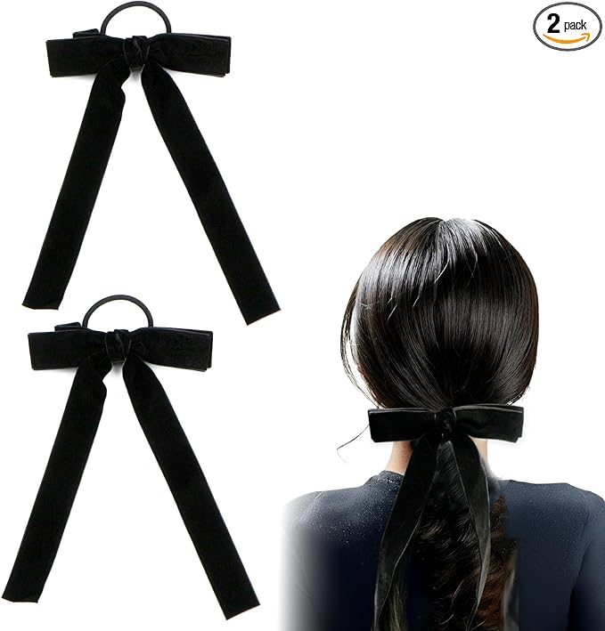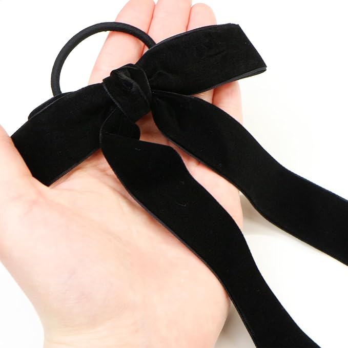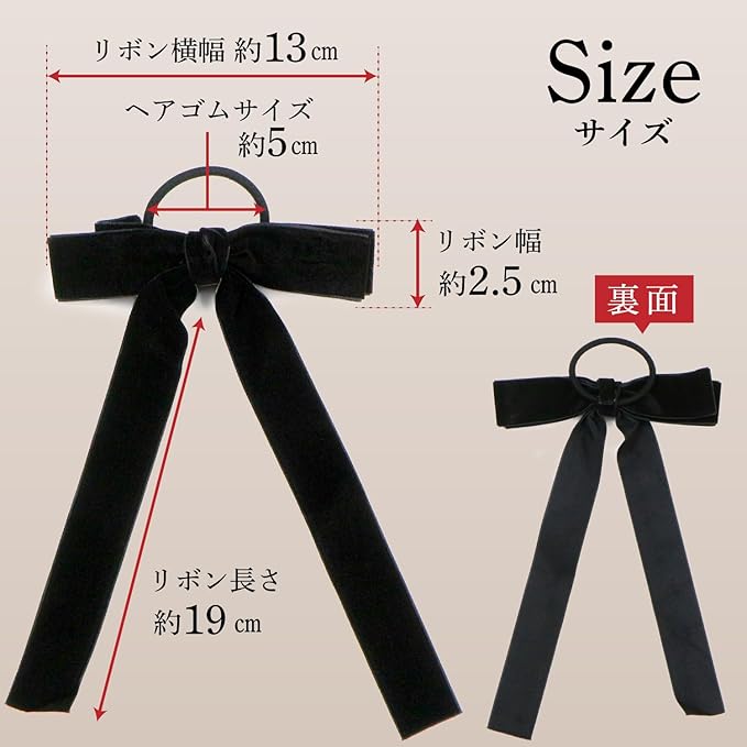 ベロア リボン ヘアゴム 2個入り 【ブラック】 黒 ロングリボン 長い ヘアアクセサリー 髪飾り 髪留め 可愛い かわいい おしゃれ きらきらぷんぷん丸 HGM-011 a