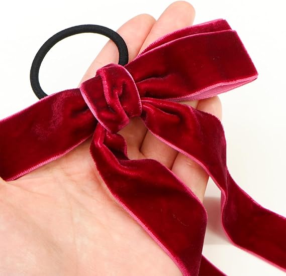 ベロア リボン ヘアゴム 2個入り 【ワインレッド】 赤 ロングリボン 長い ヘアアクセサリー 髪飾り 髪留め 可愛い かわいい おしゃれ きらきらぷんぷん丸 HGM-010 a